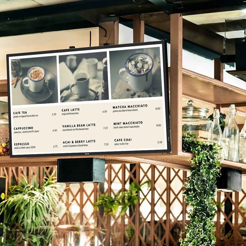 This Philips professional display is an excellent choice for businesses seeking reliable digital signage solutions. Featuring built-in CMND software, this Android® 8 based system allows effortless creation, scheduling, and management of multimedia presentations. From videos and images to scrolling banners and interactive widgets, the digital signage monitor’s 16GB of internal storage ensures your content is always accessible. Updates for the indoor advertising screen are handled wirelessly, eliminating the need for USB drives, while management is seamless via a tablet or PC on the same network. Another option is a 3-year license with Fusion Signage, a cloud-based platform with offline support, allowing you to make changes from anywhere and push updates directly to your screens. With advanced scheduling, playlist management, screen grouping, and dynamic widgets like QR codes, time, weather, and news, Fusion Signage makes content creation and management effortless. This style of signage is perfect for lobbies, hotels, restaurants, retail stores, cafes, transportation hubs, and more!