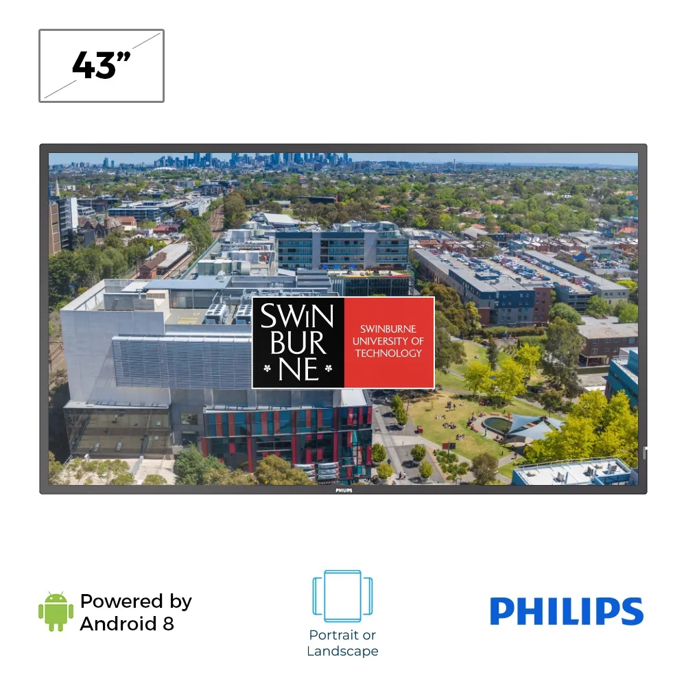 • Philips professional display features a 43” 4K Ultra HD screen with 3840 x 2160 resolution for sharp, vibrant visuals