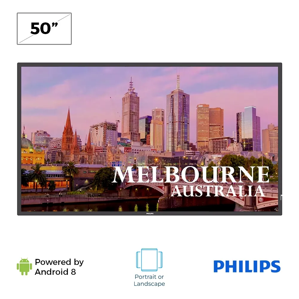 These commercial display screens have 1920 x 1080 full HD resolution and is designed to be mounted in portrait or landscape orientation. A 200 x 200mm VESA hole pattern on the back of the monitor is compatible with almost all standard brackets and mounts. This screen features heavy duty construction to hold up well to daily use and be on for longer periods of time, rated higher than residential screens whilst also including a 3-year warranty standard. There are a wide array of inputs with this screen to connect additional peripherals besides using the built-in digital signage software. Slimline Warehouse provides same day shipping to anywhere in Australia with this and most other in stock products if purchased by 3pm AEST, buy online today for fast dispatch to your location!