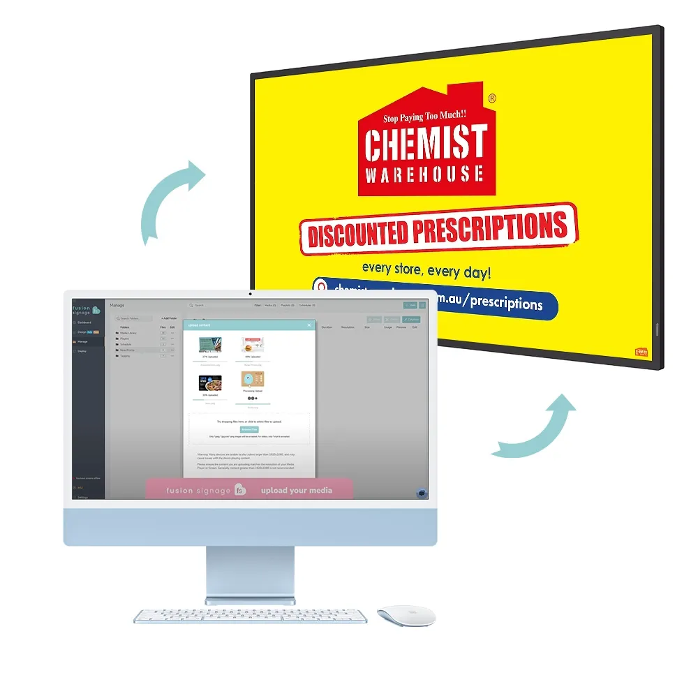 These professional-grade screens, 55 inch digital signage display, include a 3-year license for Fusion Signage, a cloud-based platform designed to simplify content creation and management. Fusion Signage offers offline functionality and allows remote updates to your displays from anywhere. Advanced tools such as playlist management, scheduling, screen grouping, and dynamic widgets like QR codes, time, weather, and news enhance viewer engagement and streamline operations. Its intuitive drag-and-drop designer and customisable templates make it easy to create tailored content that suits your branding and messaging needs.