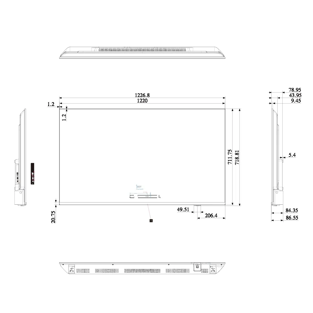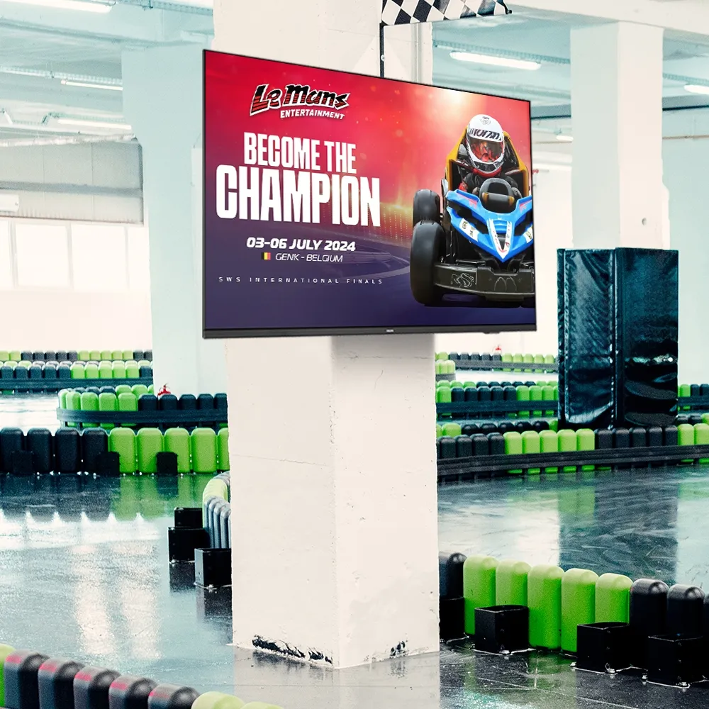 - LCD display signage features a 55” 4K Ultra HD screen with 3840 x 2160p resolution for crisp and engaging visuals