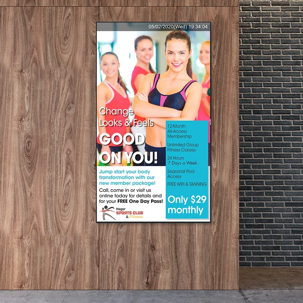 - 65" screen designed for 24 / 7 usage in landscape or portrait format