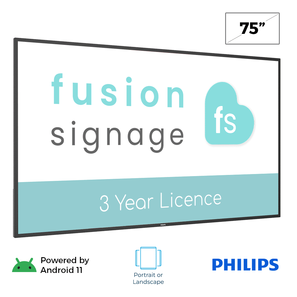 - Fusion Signage’s 3-year license simplifies content creation with advanced scheduling, playlist management, screen grouping, and dynamic widgets
