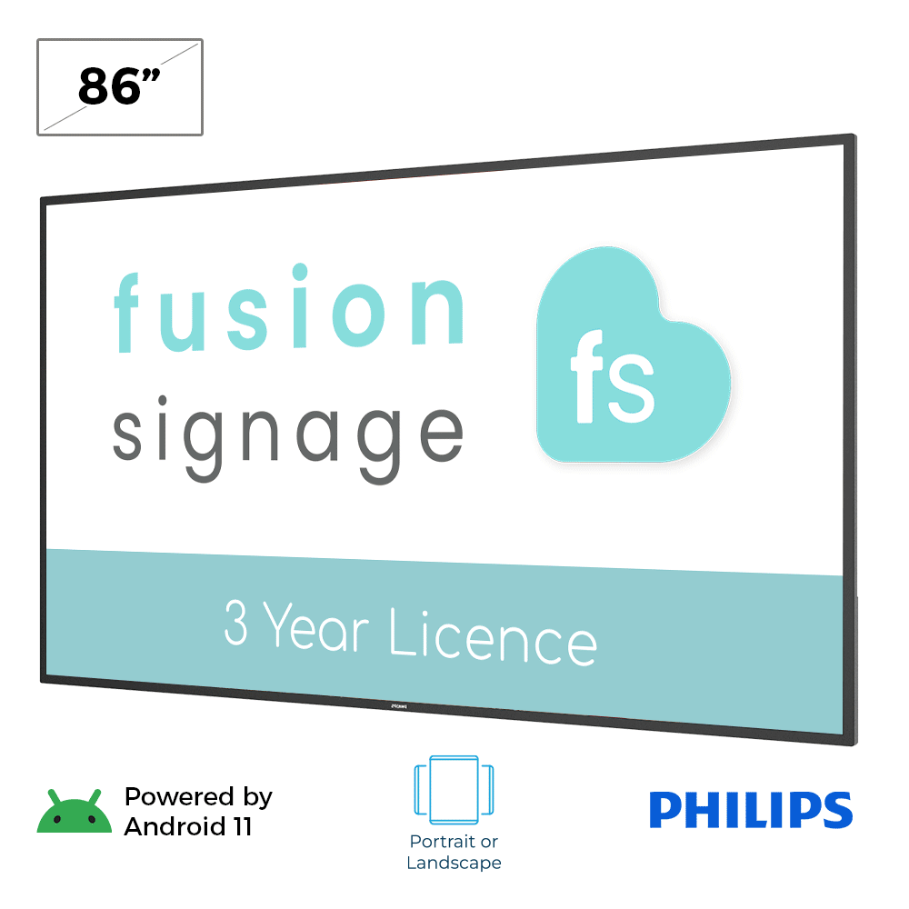 - Includes a 3-year Fusion Signage license, providing a cloud-based platform with offline support for remote updates and playlist management