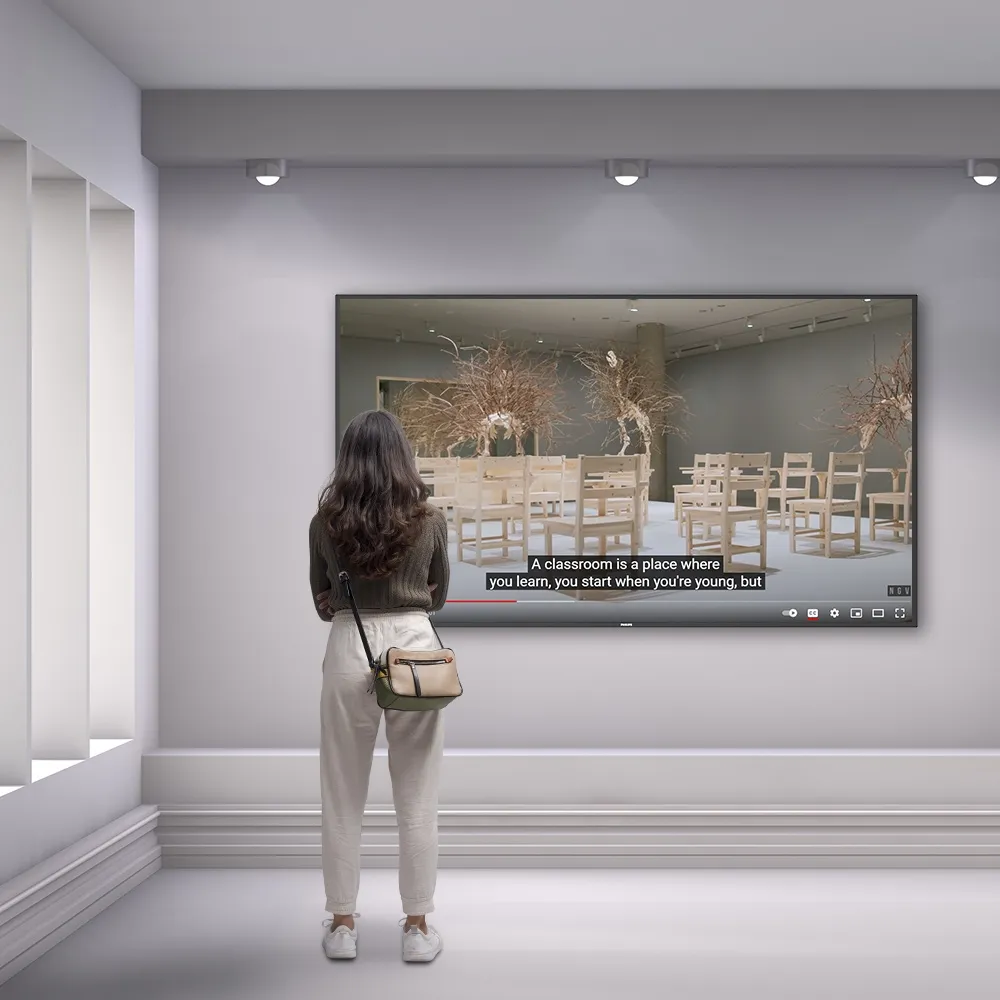 - LCD digital signage features an 86” Ultra HD screen with 3840 x 2160 resolution and a 180° viewing angle for engaging visuals from any direction