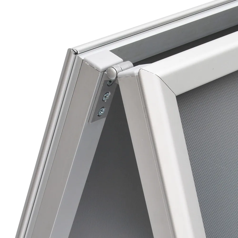 The sidewalk sign has a clear, non-glare lens included that helps protect graphics while keeping them readable. The anodised aluminium frame provides a durable display that will last for years to come. This display is designed for internal or external use.