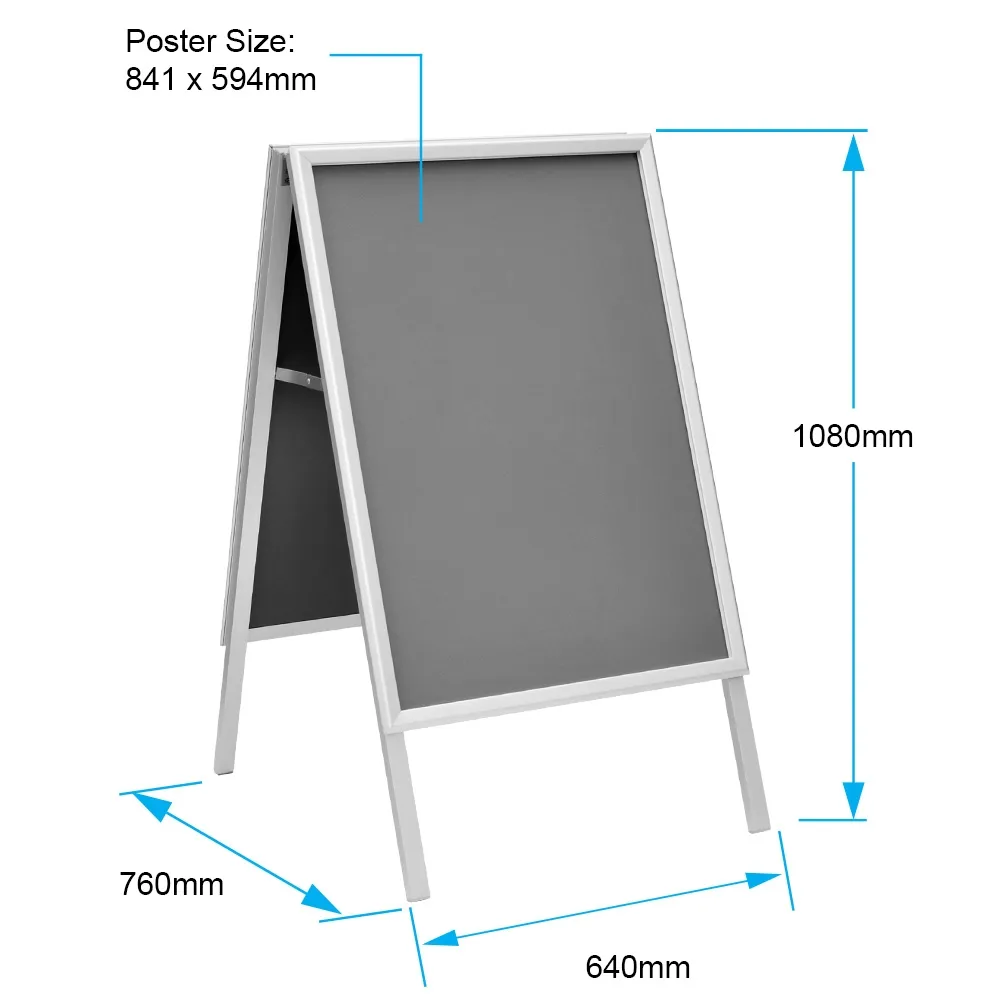 This A frame is one of the most effective means of directing more customers your way. The A board advertising is lightweight and versatile, able to be positioned in different areas nearby your premises. The aluminium A board, A frame is an easy purchase for retail stores, restaurants, bars, and more.