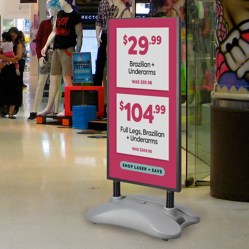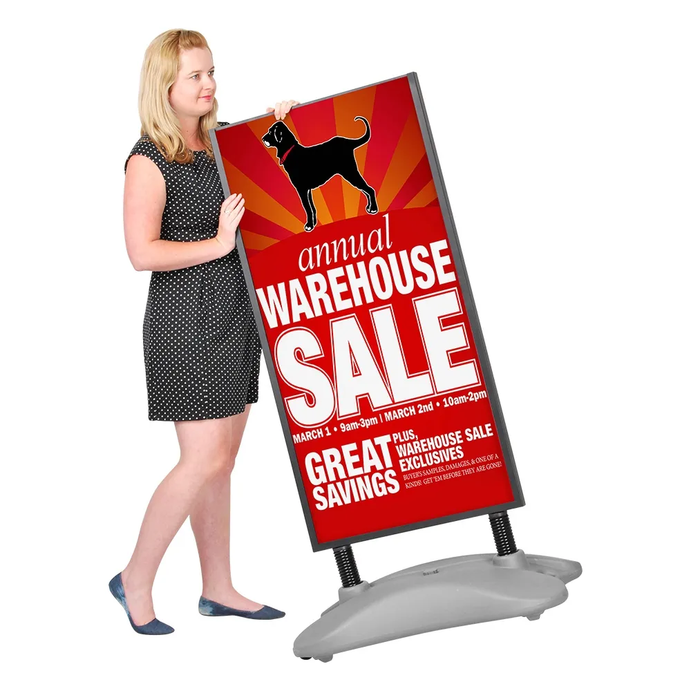- Springs on base of sign allow sidewalk signage to sway with wind to prevent being tipped over