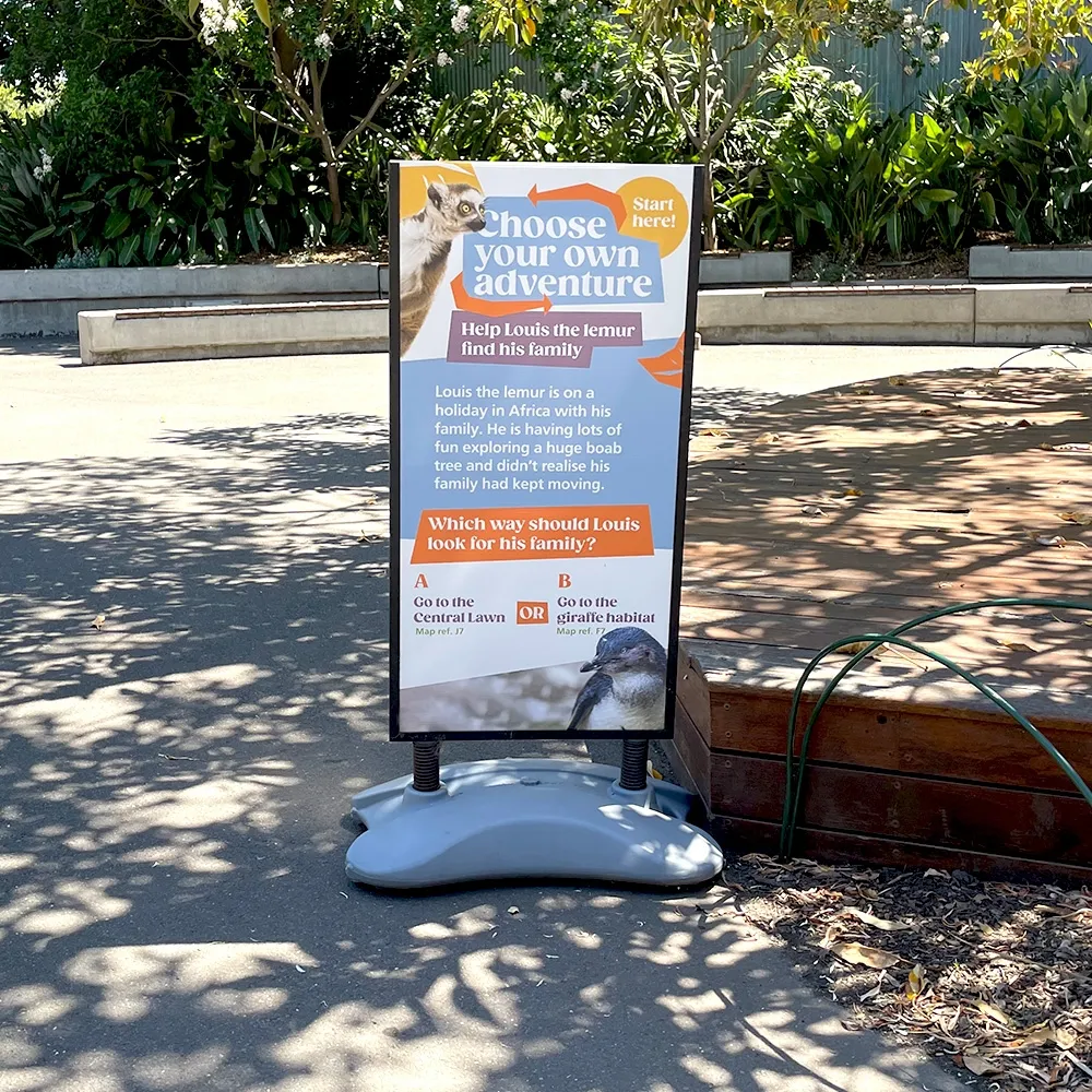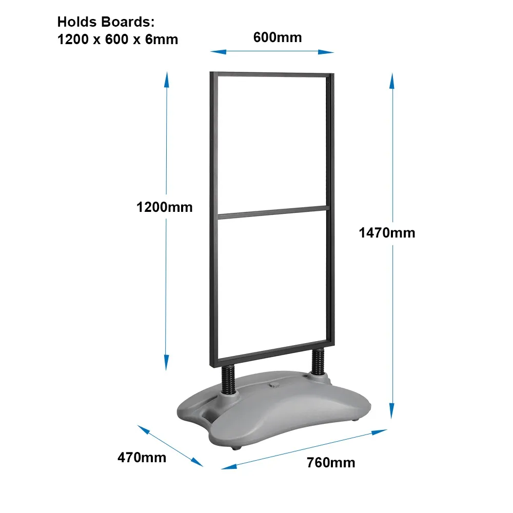 - Footpath signs are designed to hold large 600 x 1200mm graphics in portrait orientation!