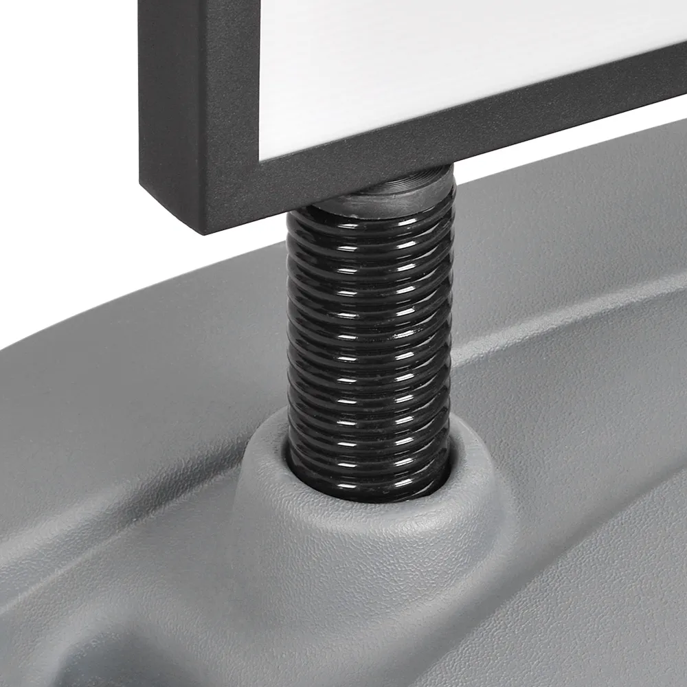 The stand has a fillable base that can hold sand or water in order to stabilise the unit to prevent it from being tipped over during windy conditions. Additionally, springs at the base of the poster holder allow the unit to sway with the wind! This display is perfect for use in a number of different locations, including cafes, museums, information centers, retail stores, newsagents, transit stations, & restaurants!