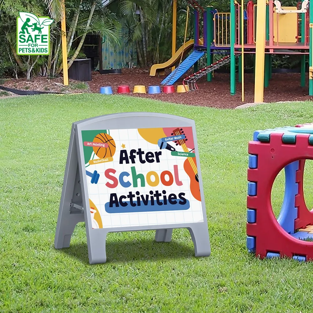 This A frame sign is made from high density plastic to be both lightweight and extremely durable, allowing for use outside even during inclement weather. The gray colouring helps to focus passersby attention on the printed signs. Safety round corners can minimise injury if knocked, especially in shopping centres and schools. Slimline Warehouse has thousands of products, including these pavement signs, available with same day shipping to anywhere in Australia. Buy online today for fast shipping to your location!