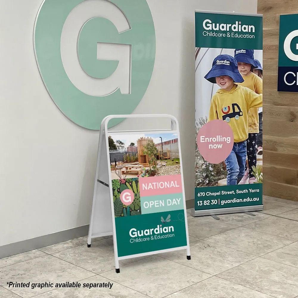 Due to their versatility, A-Frames are a welcome addition to almost any retail business. As well as directing foot traffic to your store outdoor sidewalk sign can be used to promote new and exciting products or services. They are used by all manner of businesses such as banks, chemists, travel agents or newsagents.