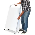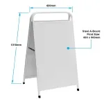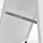This metal sidewalk sign is designed for outside use, but the white powder-coated finish is also effective and well suited to indoor advertising. This A-frame board is supplied blank – it does not include graphics – but you can have your sign writer apply a permanent signage message to the sandwich sign. Slimline Warehouse will happily print and apply your artwork for you. If this is your preference please view our Steel A-Frame Sign (SKU: AB8157WHP) option.