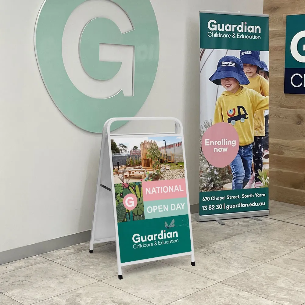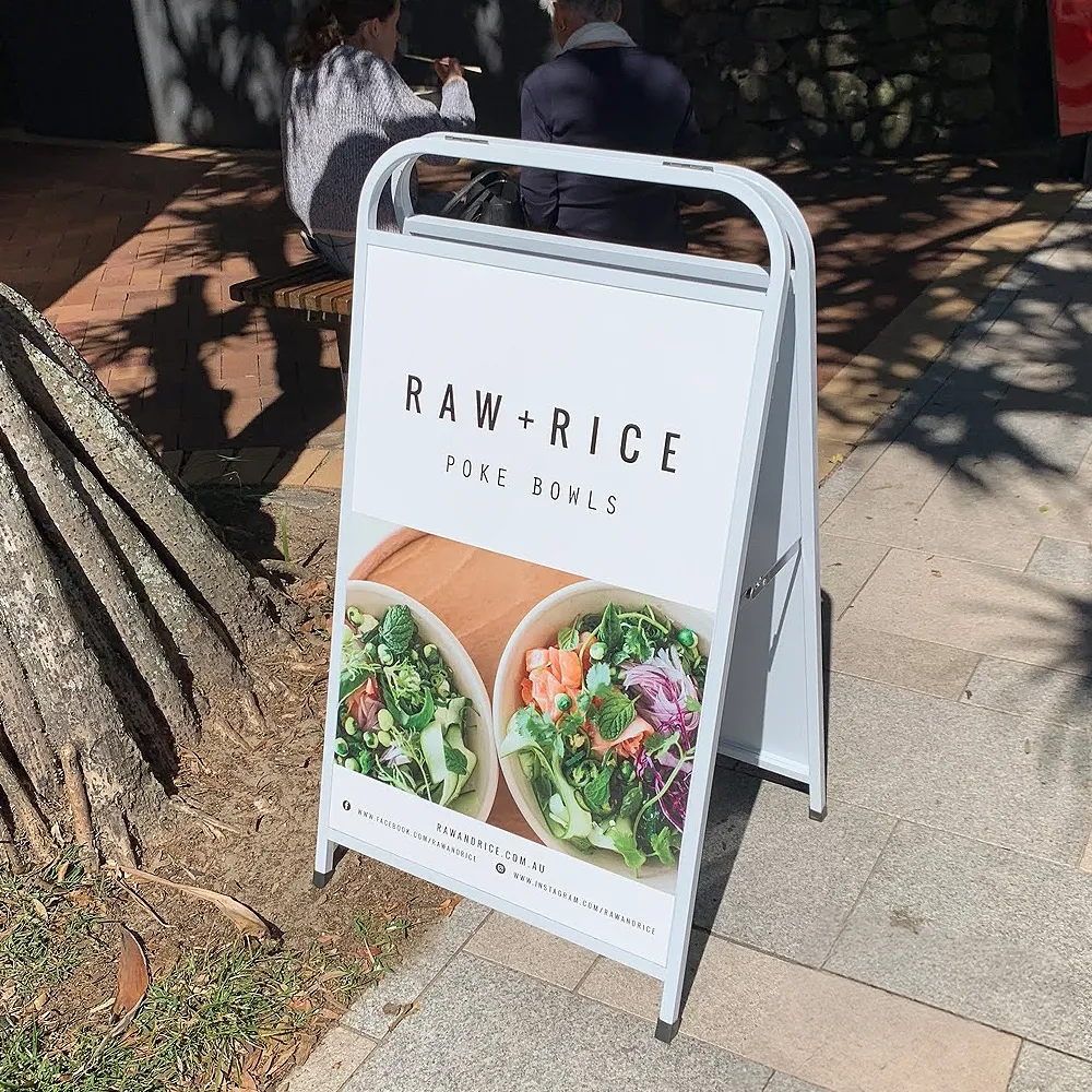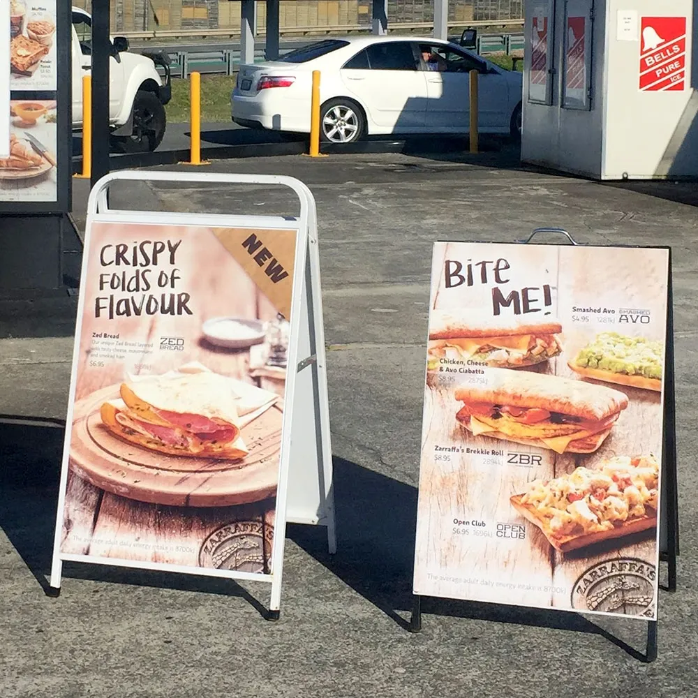 - This footpath sign includes digitally printed artwork applied to the A-Frame sign as vinyl print