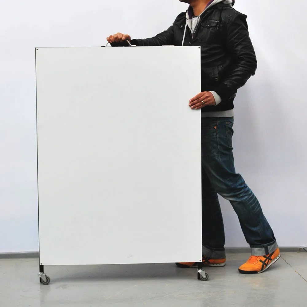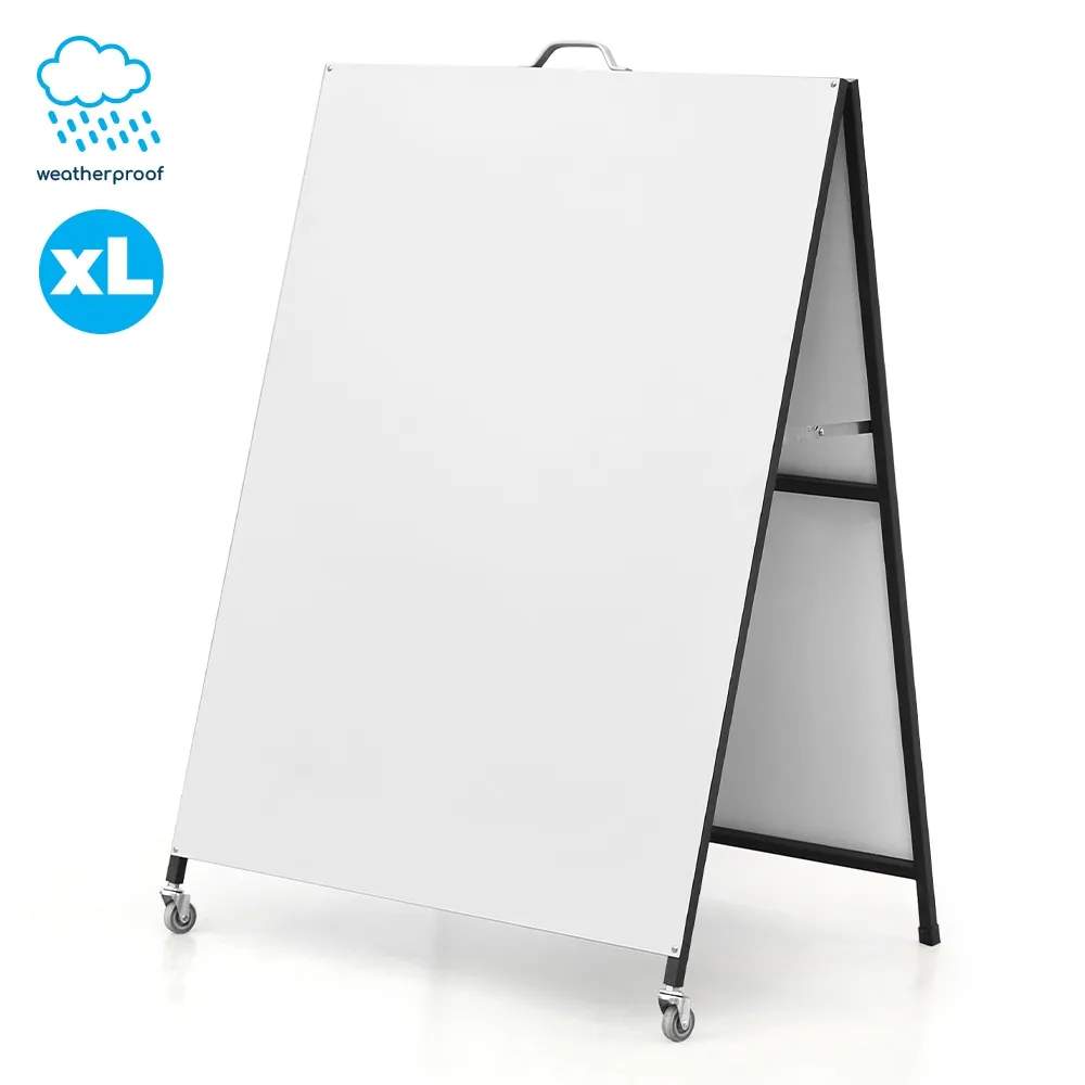 This blank outdoor sign has wheels on two of the legs, allowing the unit to be wheeled into position by any employee. The other two legs have hard-wearing, plastic feet that allow the display to stand stably for a good-looking display.