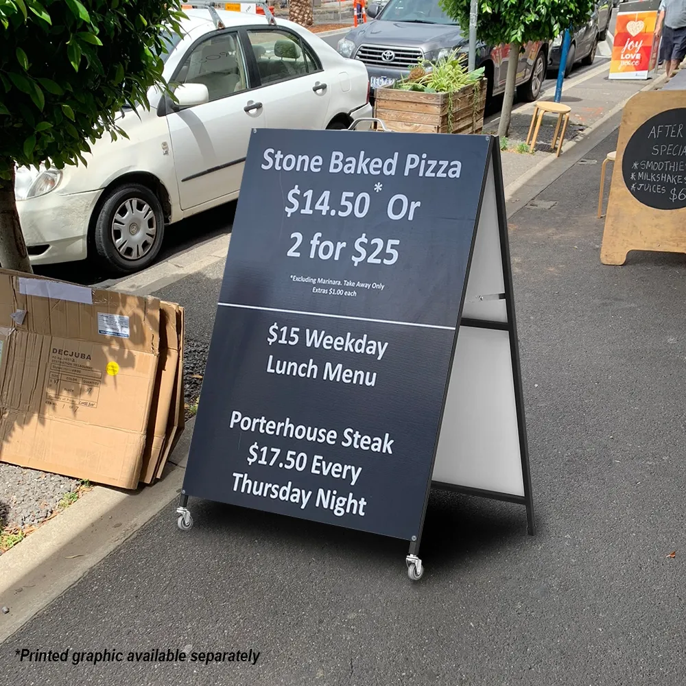 These units do not include printed graphics. For option with print, please see A Frame - 900 x 1200mm (SKU: AB90120).