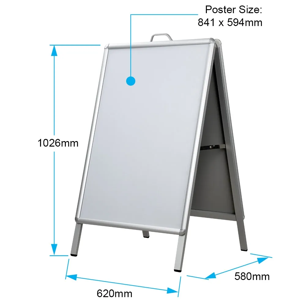 - A1 (841 x 594mm) graphics fit inside each snap frame on 1024mm tall stand