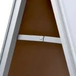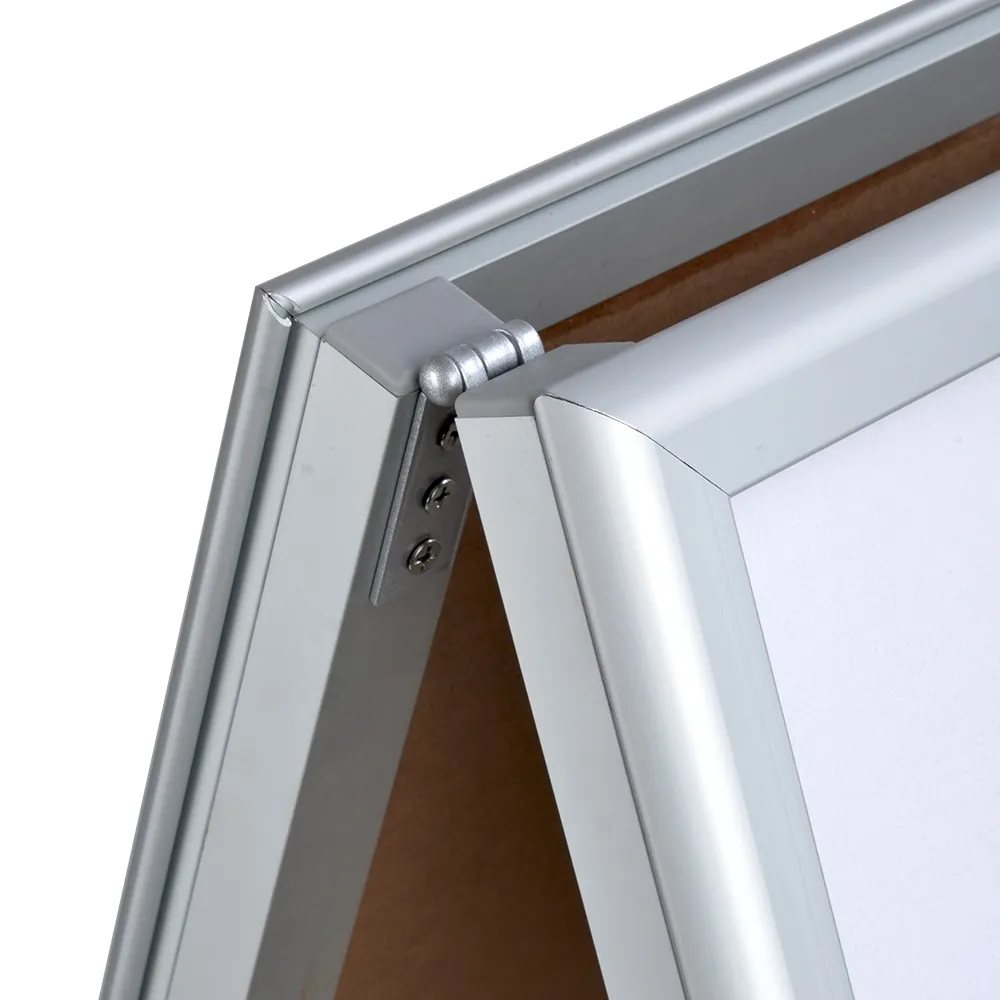 The A frame sign has non-glare lenses included for each side of the display to protect graphics or messages whilst also helping improve readability. The lightweight frame is made from aluminium with a silver finish, making it easily portable to different areas. The Aframe has a knockdown design that allows the unit to be stored in smaller areas when not in use. Purchase this quality display for advertising at your business today!