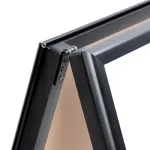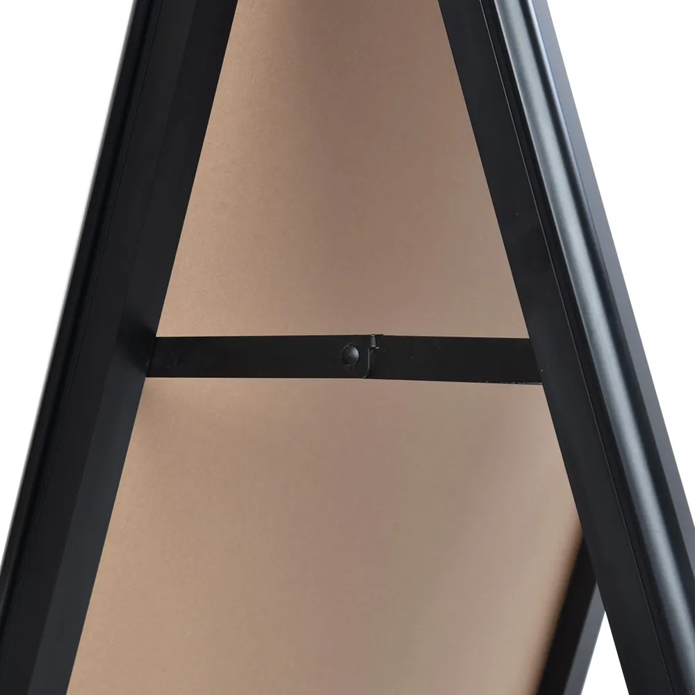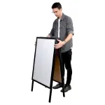 There are non-glare lenses included for each side of that board to help deter vandalism as well as protect the interior of the board from gathering grime or dust. This helps to maintain a professional looking display at all times, whilst also making it easier to read what is being displayed. The folding design of the sandwich board means you can easily store the unit when not in use. This sidewalk sign is made of lightweight aluminium for a durable unit that is easily transported to and from different events. The stylish black finish fits in with any location or décor easily, order today!