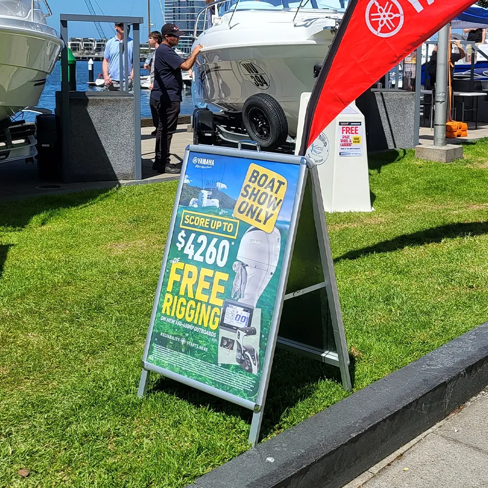 The selection of different aluminium A board displays provide a wide selection of products to choose for your business. Different sizes, makes, & finishes allow you to find the perfect advertising tool for use at you location.
