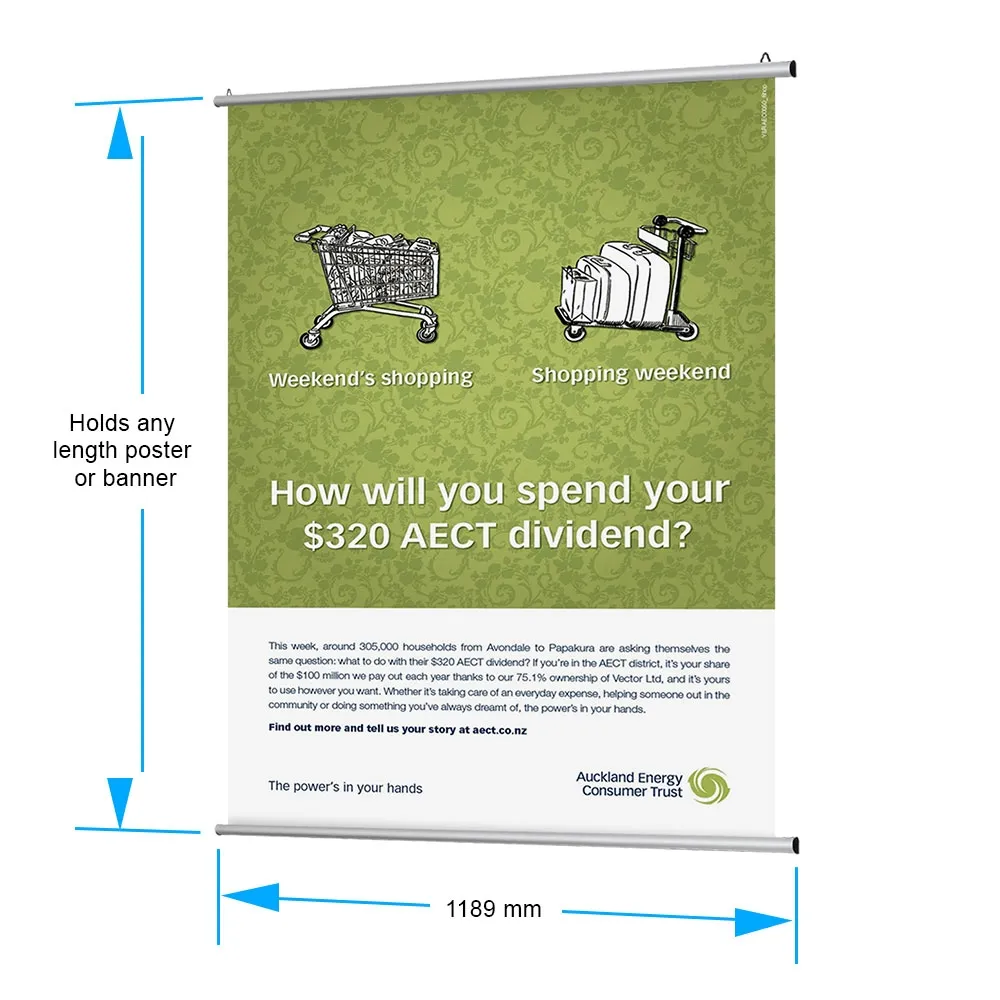 - 1189mm Wide Banner Rail Ideal for Store Windows