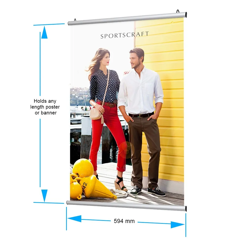 - Any length banner can be used with aluminium poster rails