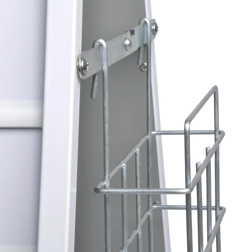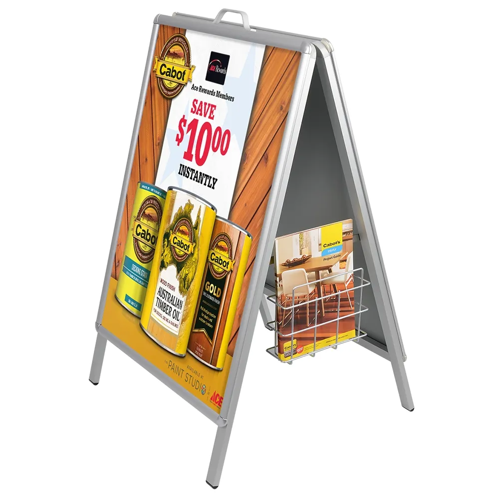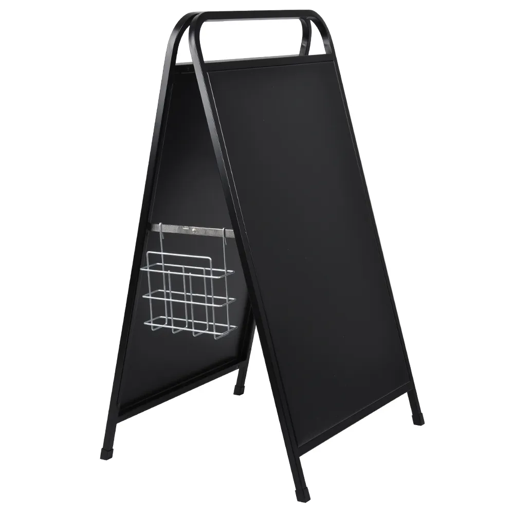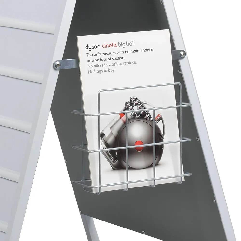 The literature pocket for A frame sign, designed for use with outdoor sandwich boards, is designed to hold A4 (210 x 297mm) standard sized brochures in portrait orientation. You can also place (2) DL (99 x 210mm) pamphlets side by side within this pocket. In total, about 500 total pieces can be held within this 72mm deep holder to make restocking a seldom need. The wire design provides an almost unobstructed view of displayed items as well to add an additional advertising side!