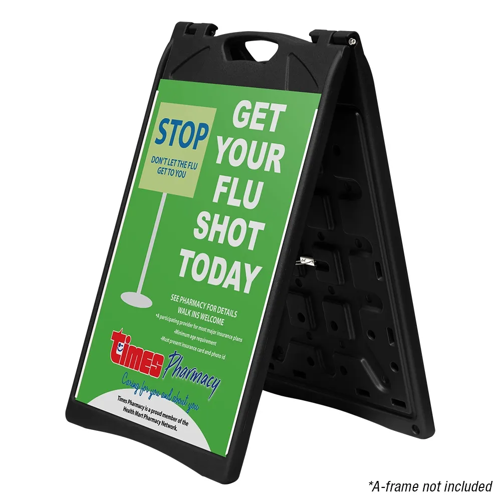- 604 x 900mm has single-sided print, with (2) need to be purchased for dual-sided displays