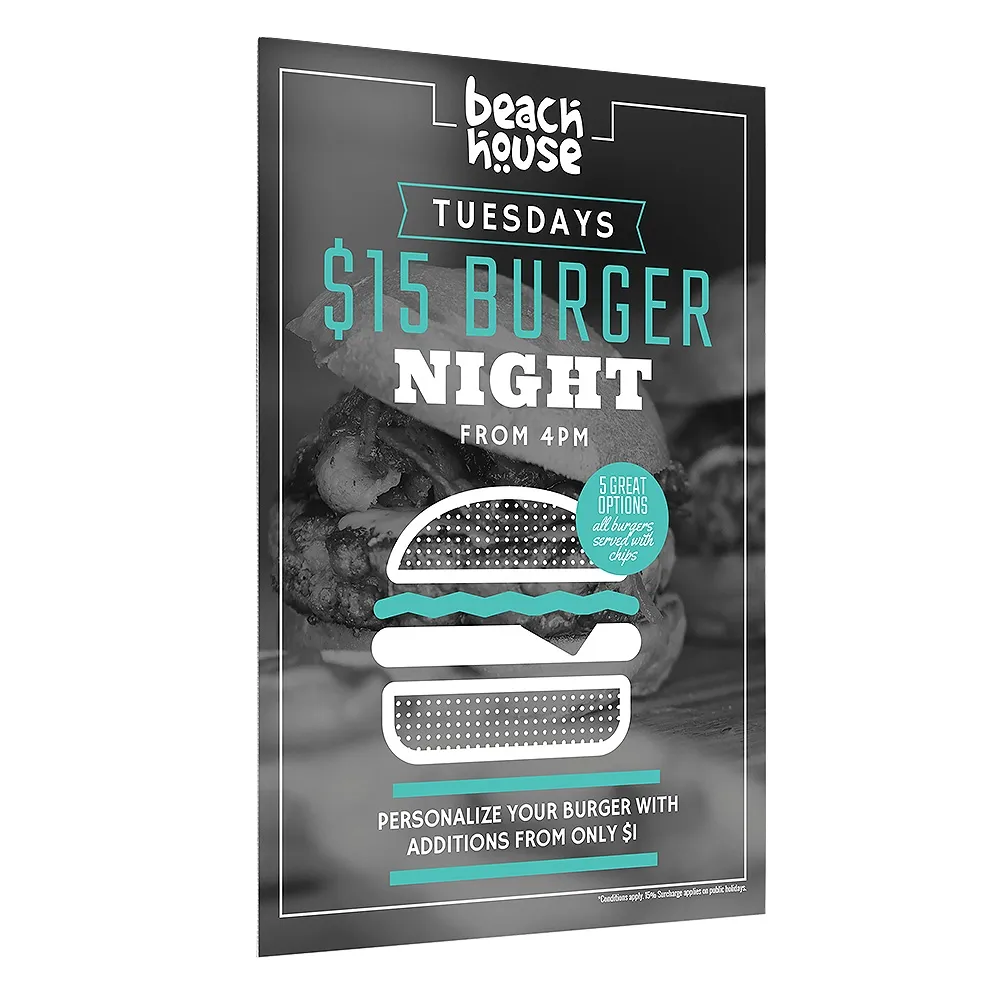 This corrugated plastic panel is used with footpath signs to easily communicate with passersby, whether in front of a retail stores, cafe, transportation hub, arena, retail stores, information centre, and more! Your custom designs are digitally printed in full colour onto the corflute board to help draw attention with ease. The 604 x 900mm size offers plenty of space for logos, information and imagery to create eye-catching signs that are perfect for promotions and wayfinding. If you need assistance with your graphics, our in-house design team is available to help, with (3) tiers to choose from depending on you needs!
