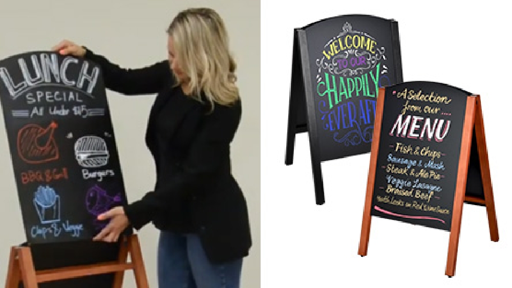 - A frame blackboards are dual-sided to reach more people from single footprint