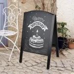 A frame blackboards, like wooden pavement signs, help you to advertise to passersby using eye-catching displays that get them interested in your business! The outdoor signage is dual-sided to maximise space on the pavement outside your location, able to be read in multiple directions at once whilst leaving plenty of room for walking. The included sign boards are double-sided as well, so you can have multiple messages written on the boards that can be switched during the day without having to write brand new messages!