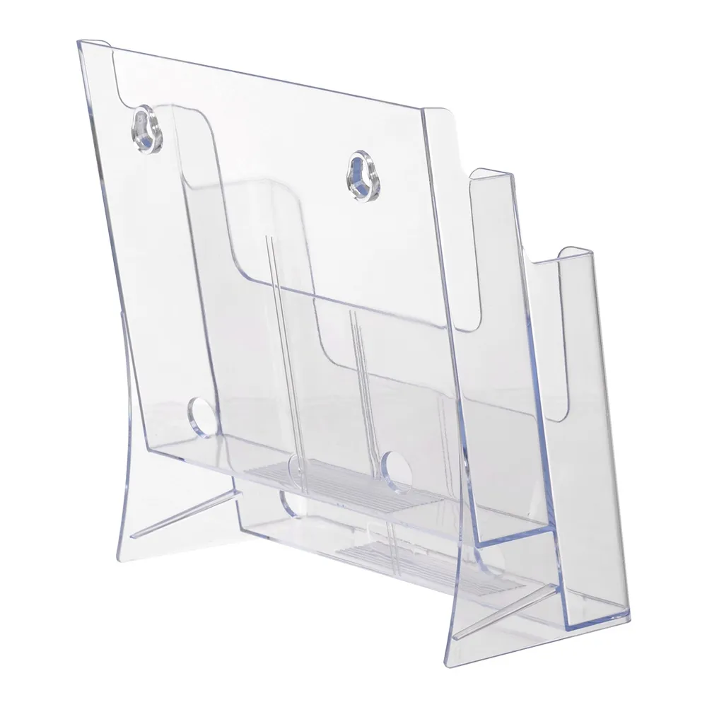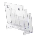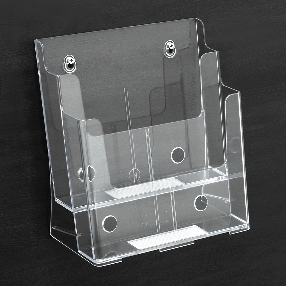 The clear magazine holders, like a plastic literature display, is made of injection moulded plastic that ensures long term use at a low price. The clear plastic also has polished edges for the visual look of acrylic. Using a clear display helps provide customers with a full view of displayed literature that helps entice them to take a look!