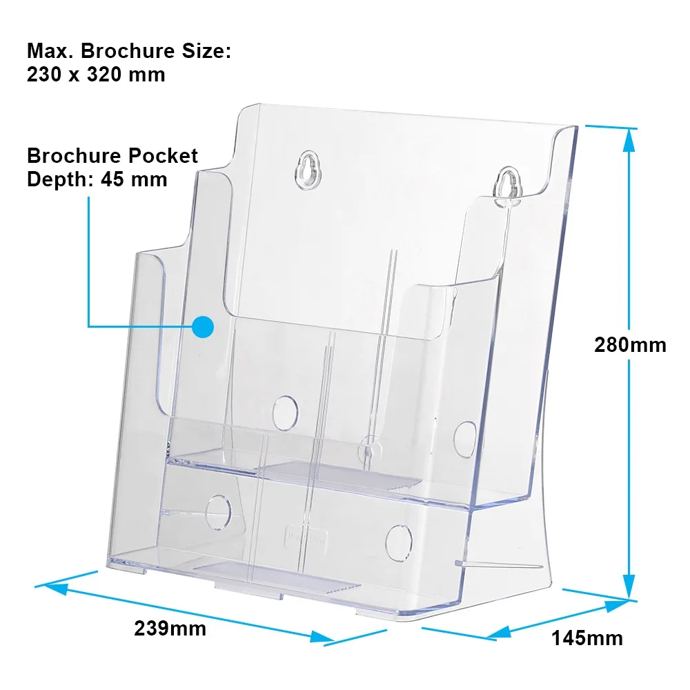 - Each pocket is designed to hold A4 (210 x 297mm) brochures in portrait format
