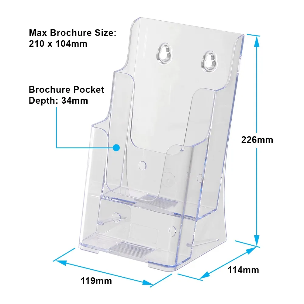 - Each pocket holds DL (99 x 210mm) standard sized brochures in portrait format