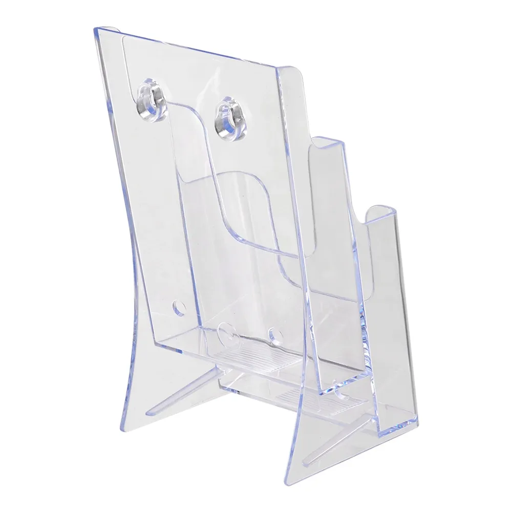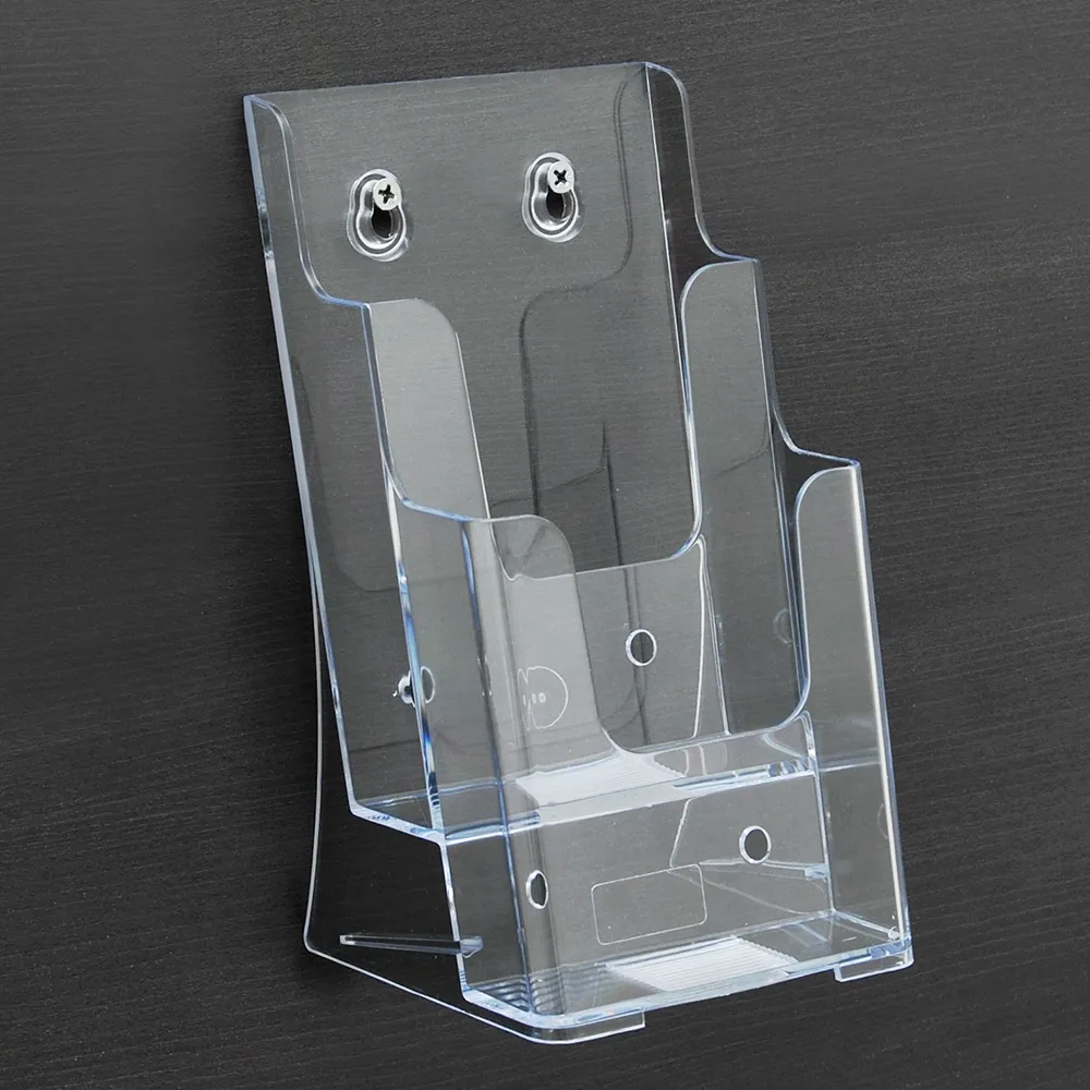 The multi pocket brochure holder can display DL (99 x 210mm) standard sized brochures in portrait orientation within each pocket. The clear plastic displays are made from injection moulded plastic, providing durability and low cost all in one display! The clear stand with polished edges resembles acrylic literature stands, offering a full view of displayed literature.