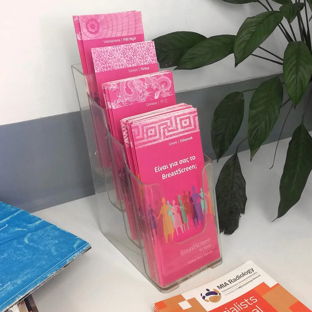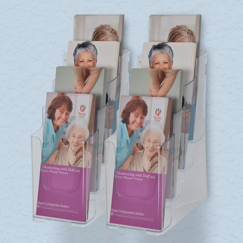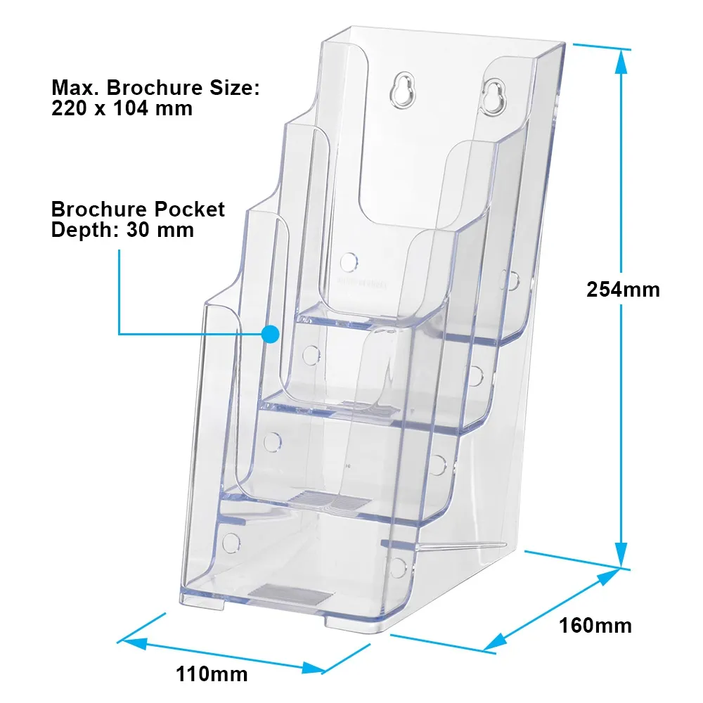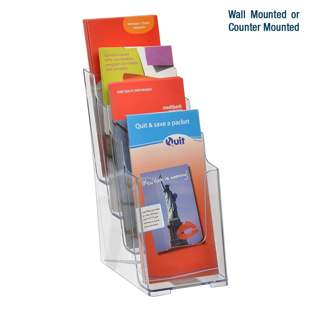 - Injection moulded acrylic is manufactured for durability & clear to offer full view of pamphlets