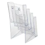 The clear brochure racks, multi pocket literature holders are made out of injection moulded plastic. This clear magazine display has polished edges, similar to acrylic pamphlet displays, and offer a full view of materials placed in the front pocket of the stand. The durable display stands up well to constant use in public areas.