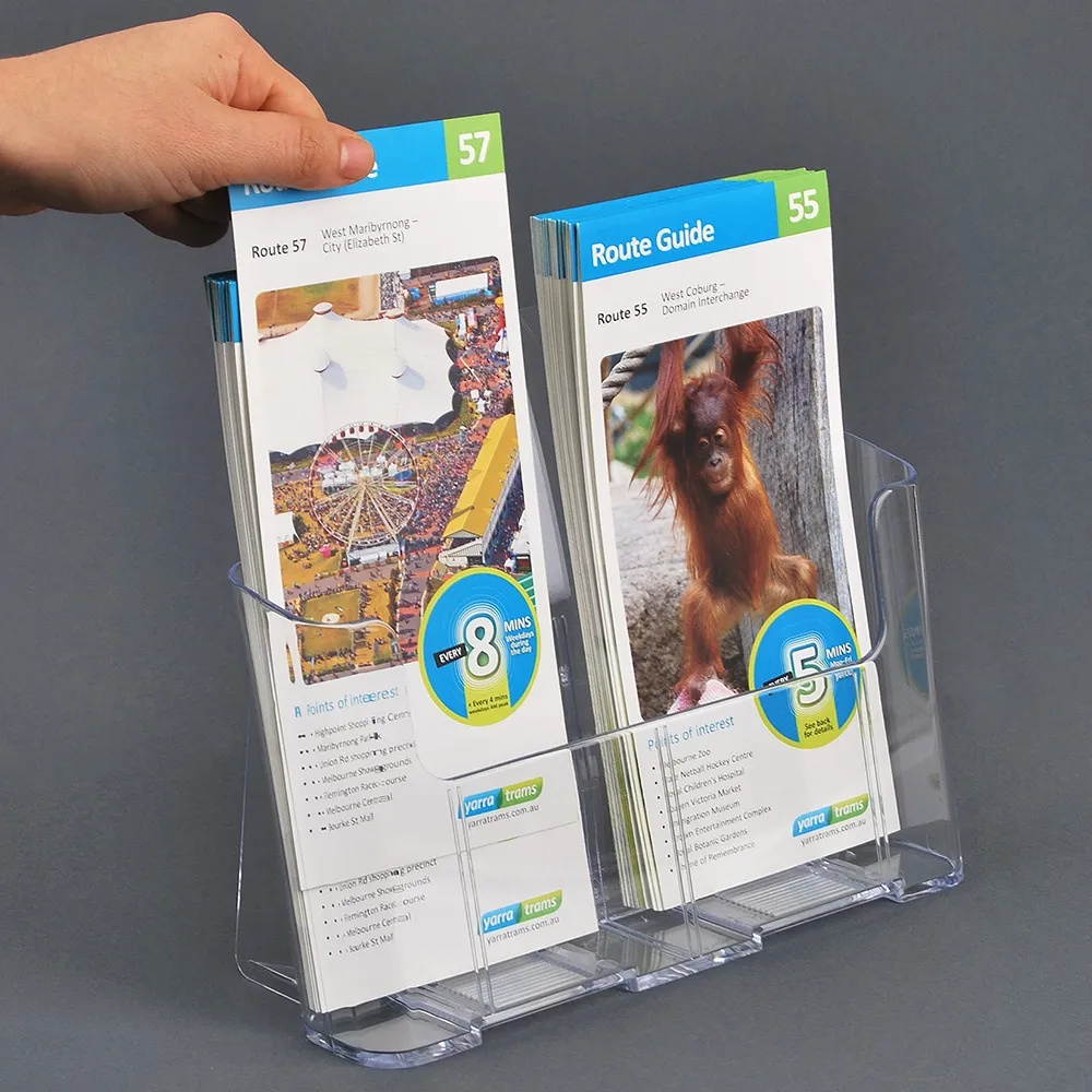 Brochure displays are a great way to keep your counter top organised and leave your customers with a take-home reminder of your business.