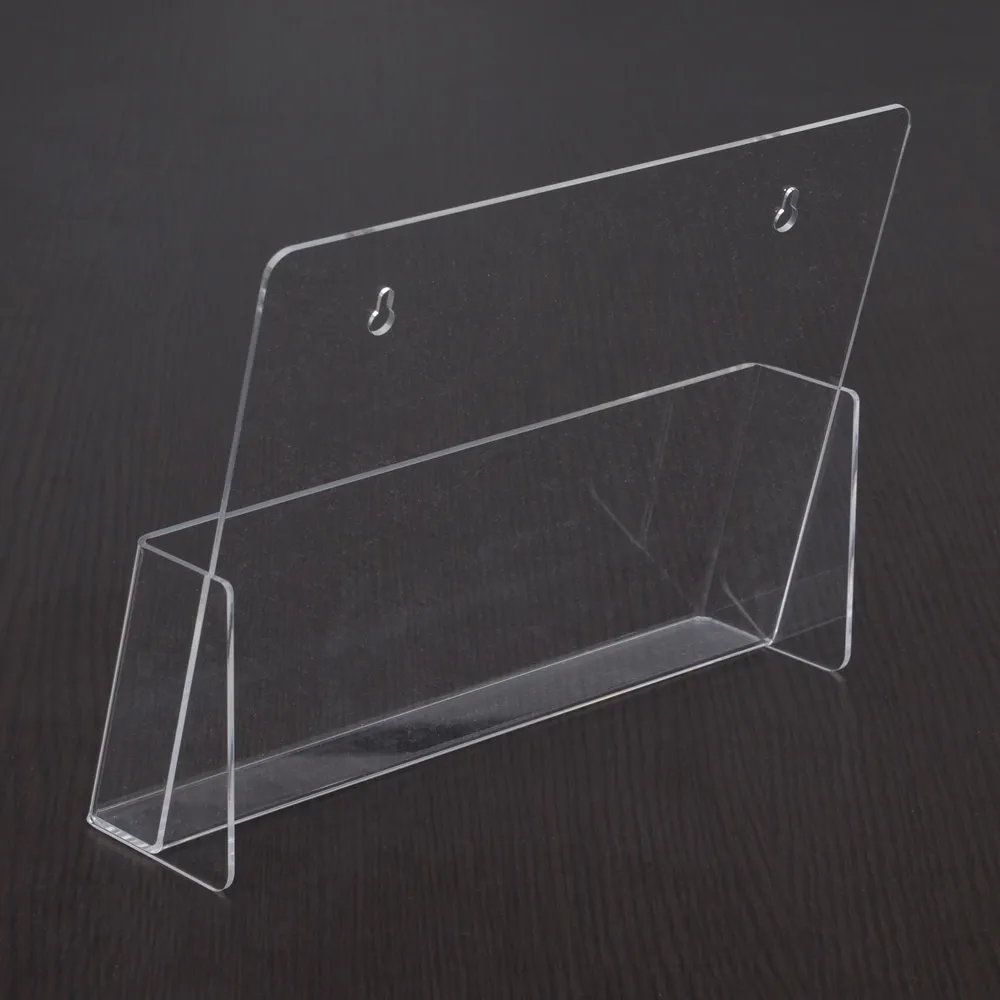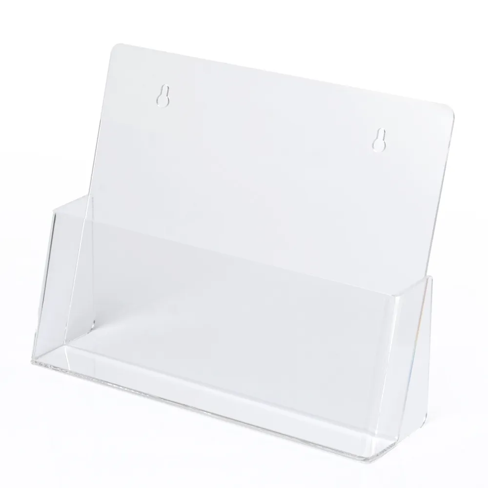 This acrylic brochure holder is a versatile display with the option of being wall mounted or placed on a countertop! Two keyhole cut-outs in the back make wall mounting simple, with the angled pocket making it easy to grab literature when placed in either position. This plastic literature stand holds A4 (210 x 297mm) leaflets that are in landscape orientation.