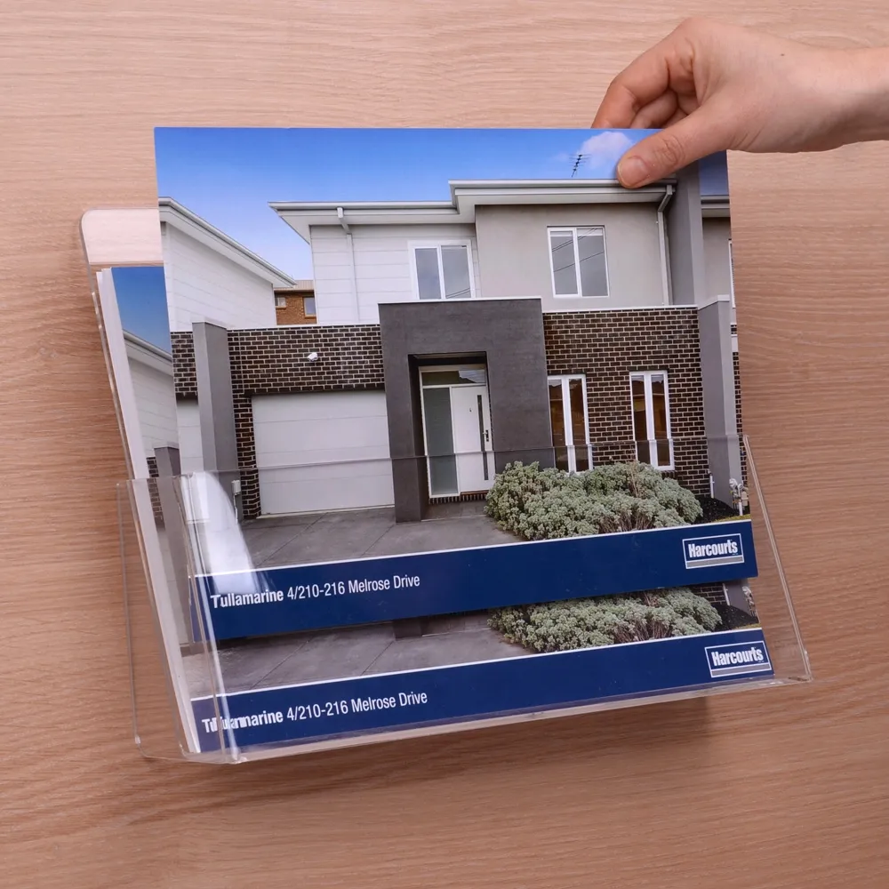 - Clear acrylic pocket ensures entire pamphlet can be seen by customers