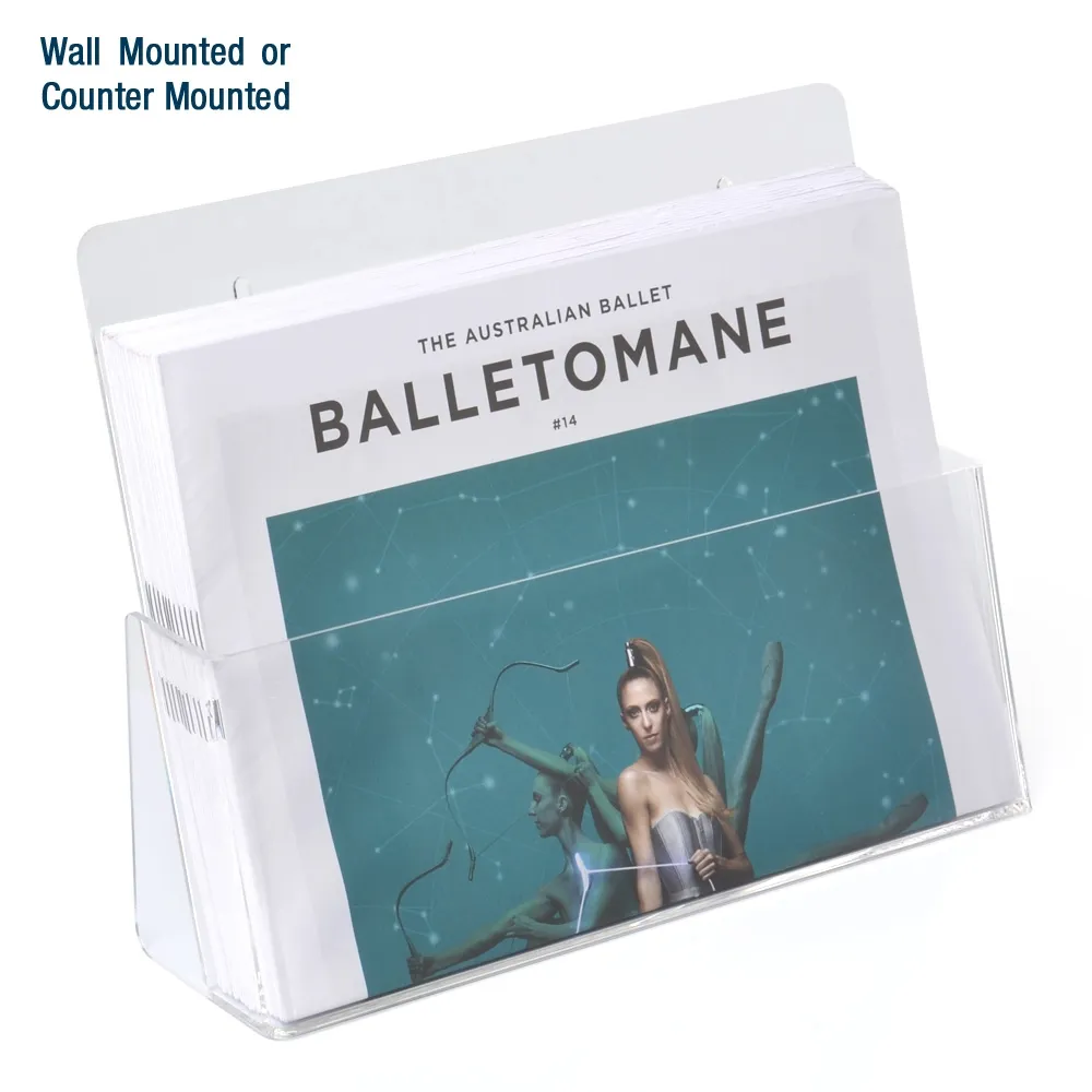 - Brochure holder can be mounted on wall or placed on countertop!