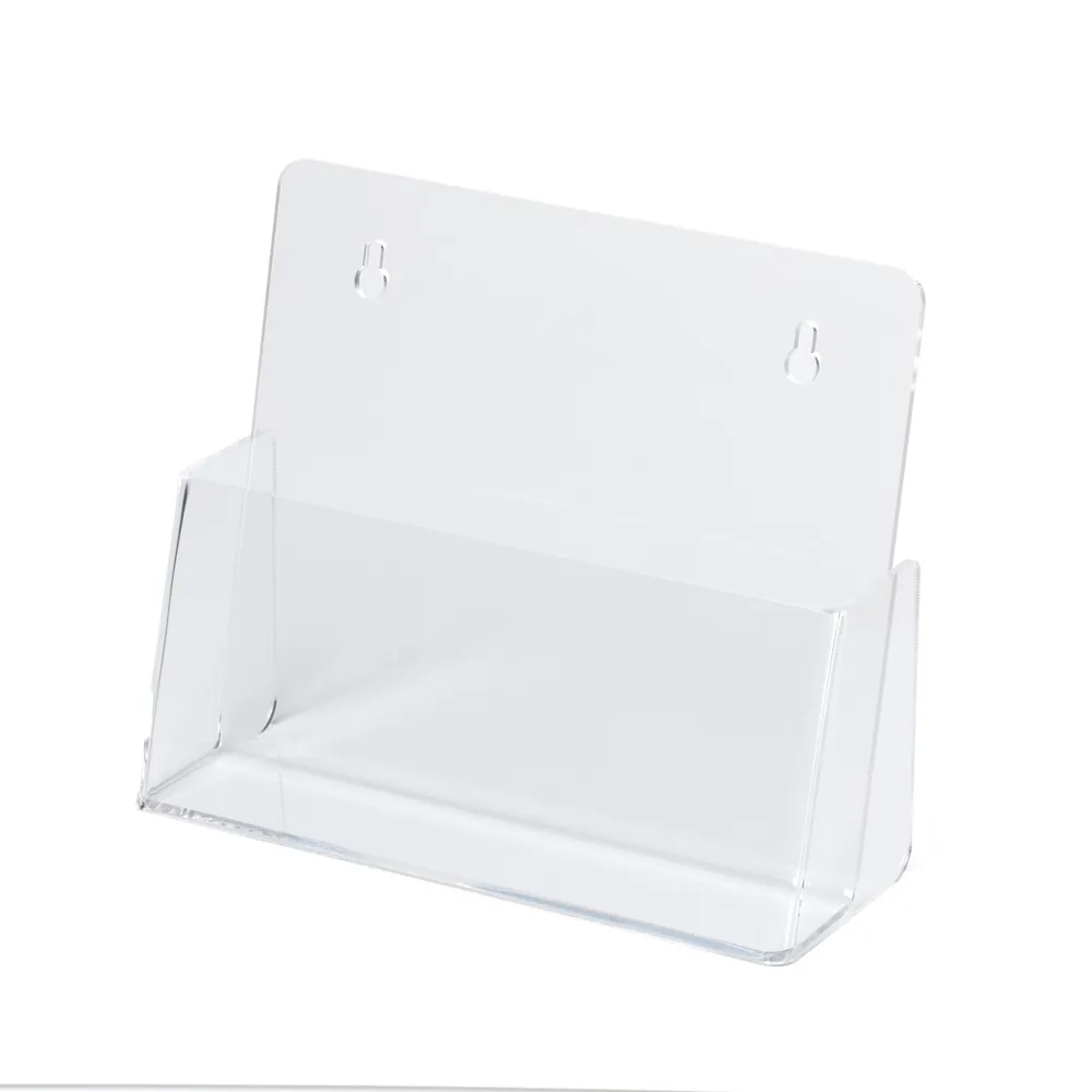 These desktop literature holders, like acrylic magazine displays, are designed to be placed on a table or use the (2) keyhole cut-outs on the back of the stand to mount this display to a wall! The pocket of the acrylic stand is angled to make taking out brochures easy. At 37mm deep, you can place plenty of brochures in the display for patrons to take home with them!