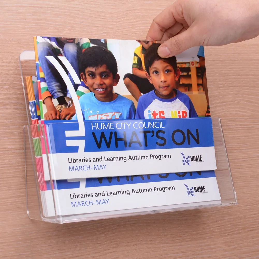 - Desktop literature holders display A5 (210 x 148mm) literature in landscape format