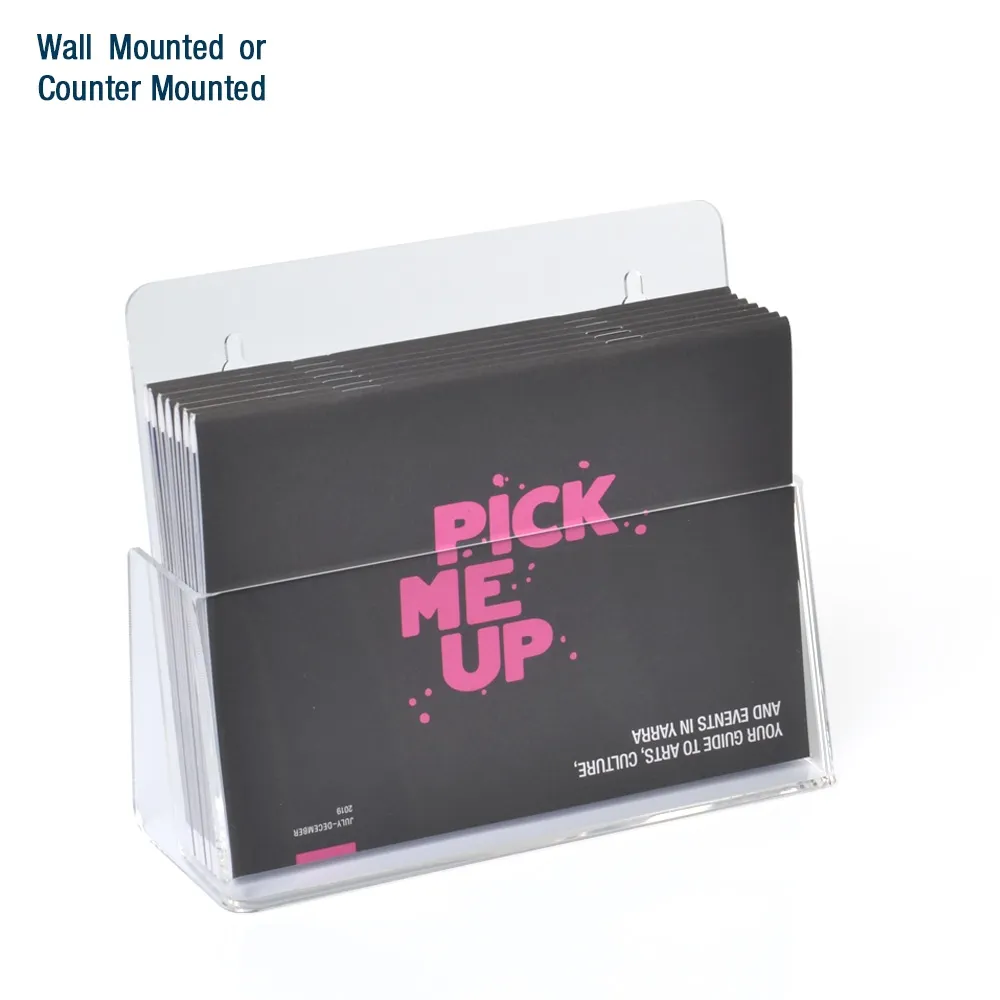 - Pocket is made from clear acrylic to provide full view of brochures!