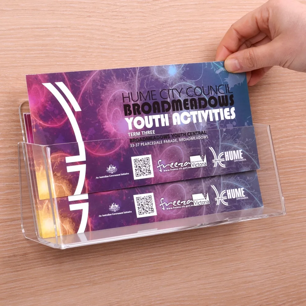 - Stand designed to hold DL (99 x 210mm) brochures in landscape format