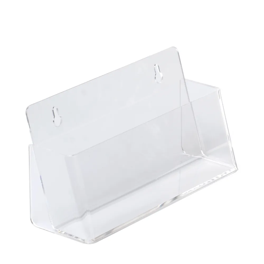 This desktop literature holder displays DL (99 x 210mm) brochures that are in landscape orientation. Like acrylic magazine racks, these brochure racks are versatile displays that can be placed on a countertop or wall-mounted depending on your needs. Two keyhole cut-outs on the back of the display make mounting easy at any location. Order today to provide take-away information to visitors!