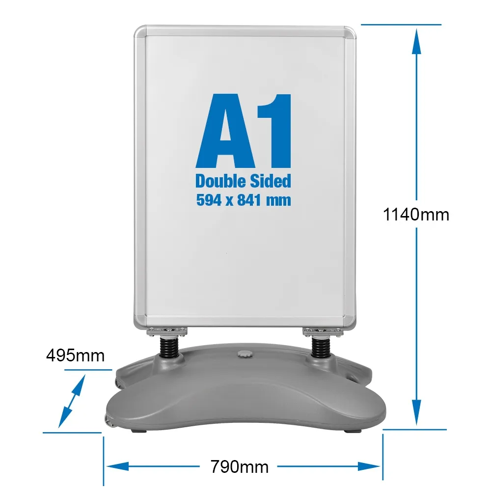 - Designed to hold A1 (841 x 594mm) graphics in portrait orientation on both sides!
