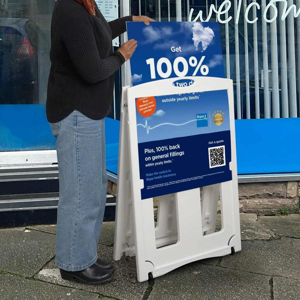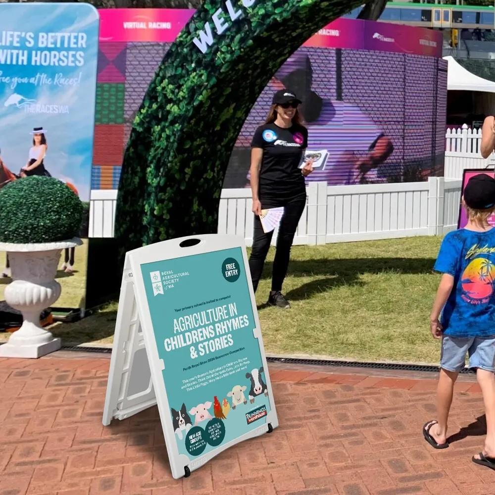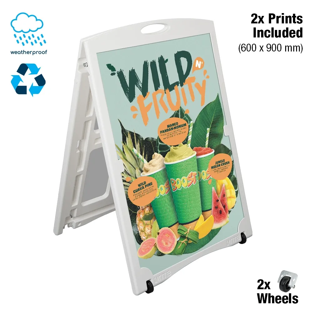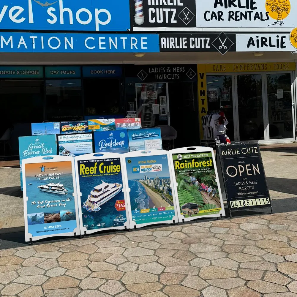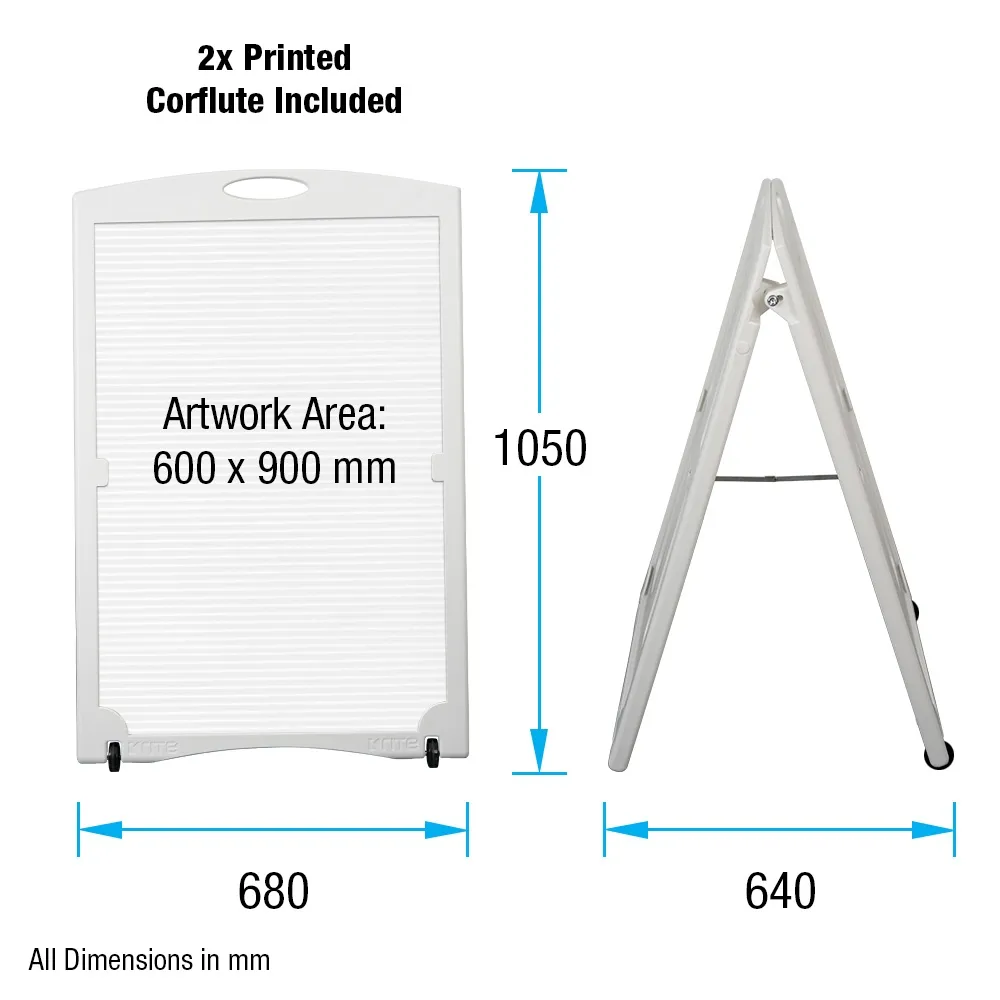 - Custom sandwich board signs have printed 600 x 900mm panels included with purchase