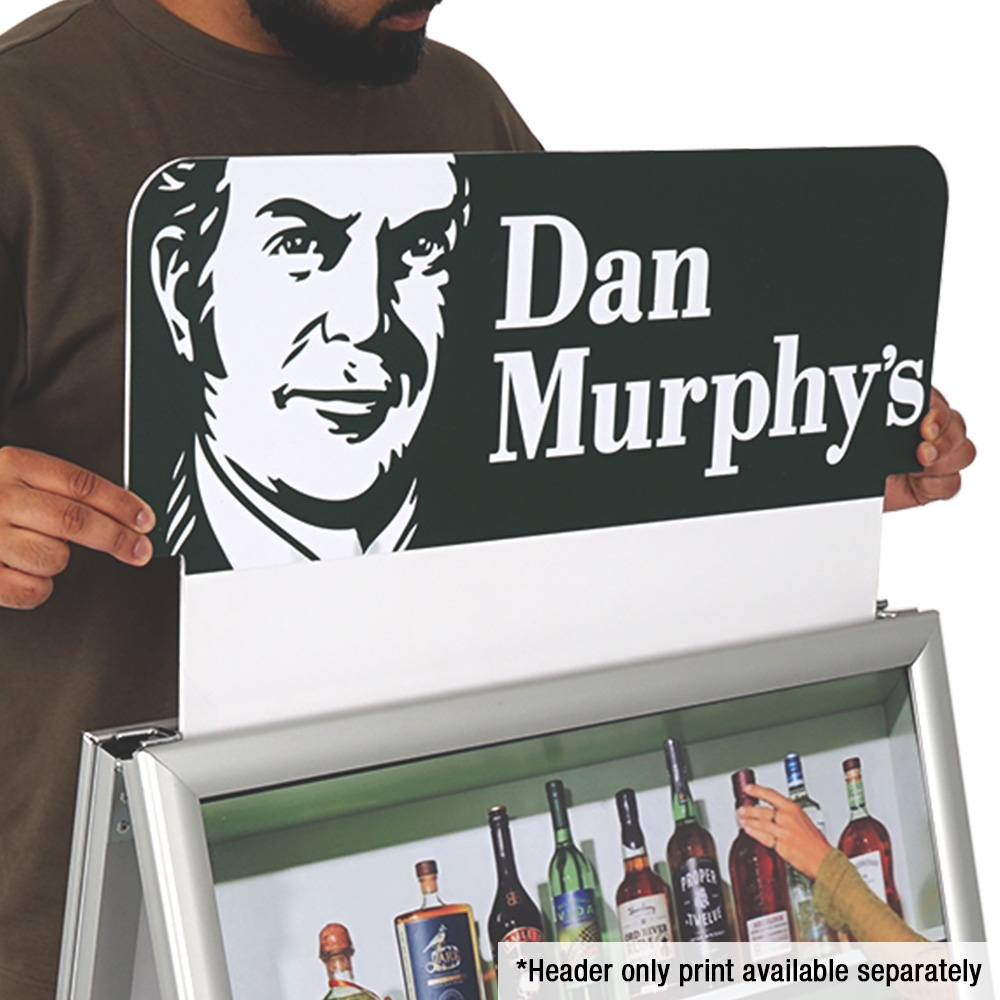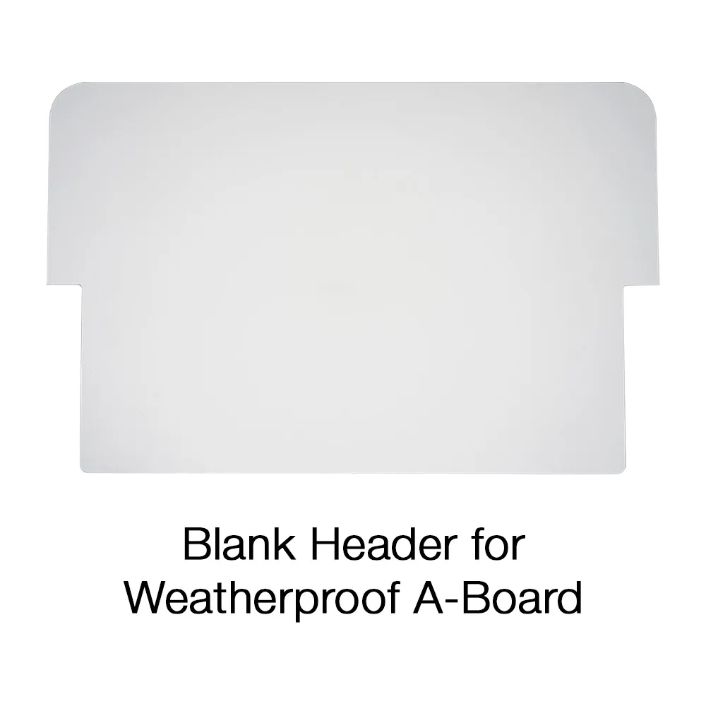 This blank header for ABOA1 is a great way to add additional promotional material to your existing pavement sign. The header is able to have printing done on both sides in order to maximize outreach to pass by from a single footprint. There is 655 x 220mm space on each side to provide heaps of area for large fonts and graphics that will surely draw the attention to passersby.