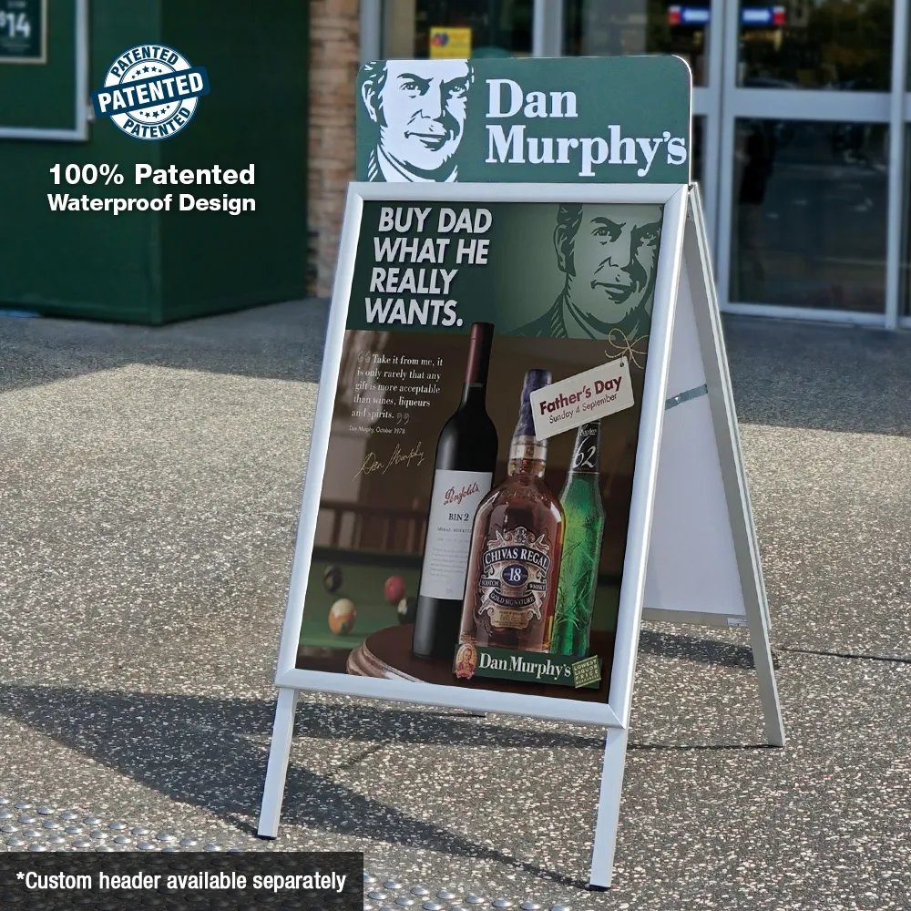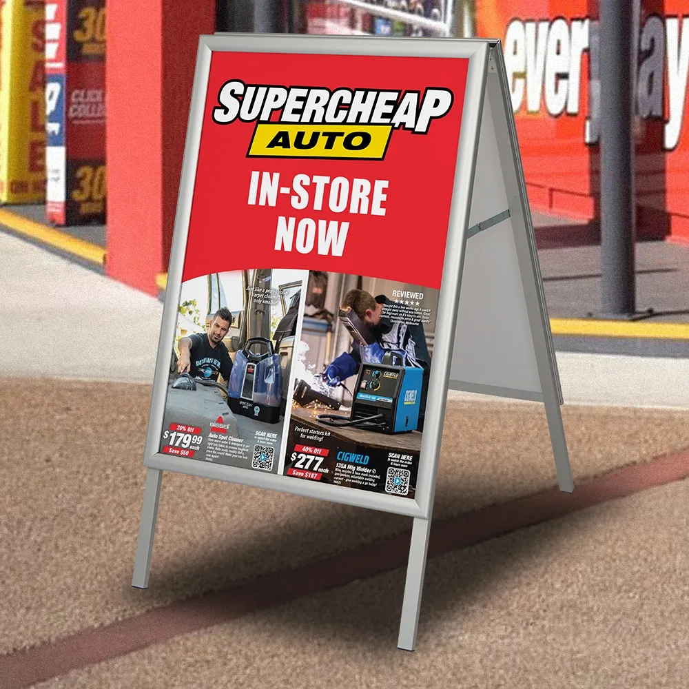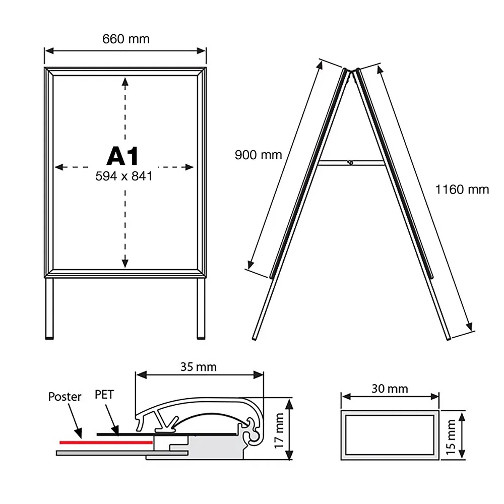 • A Frame advertising boards display A1 (594 x 841mm) posters on each side